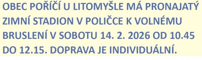 Obecní úřad v Poříčí u Litomyšle oznamuje, že středa 17. 12. 2025 je poslední úřední den v tomto roce, kdy bude otevřeno pro veřejnost. Od 22. 12. do 31. 12. 2025 bude zavřeno.